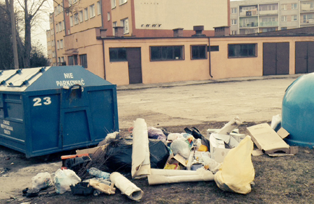z naszych Czytelników, pan Krzysztof przysłał nam zdjęcie pokazujące, jakimi to widokami on i mieszkańcy bloku przy ul. Chopina 1 byli raczeni na święta. Fotografia została wykonana jeszcze przed Wielkanocą. Jak widać służby odpowiedzialne za wywóz nieczystości albo zapomniały tutaj się stawić, albo zbyt wcześnie rozpoczęły świętowanie. Podobne, mało estetyczne widoki rozciągają się także pod oknem pana Jana, mieszkańca os. Leyka. Przysłał on nam kilka zdjęć zatytułowanych: „wystrój świąteczny”. Pokazują one ogrodzenie osiedlowego kortu tenisowego, na którym powiewają poobrywane banery reklamowe.{/akeebasubs}