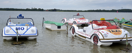 Bawiąc w miniony weekend nad jeziorem Świętajno, zauważyliśmy tam ciekawe rowery wodne w kształcie pojazdów lądowych – taxi, samochodu MO, czy straży pożarnej. Pojazdy takie byłyby pewnie wielką atrakcją, zwłaszcza dla najmłodszych, także i u nas w Szczytnie, Może baza wodna MOS-u pokusiłaby się o podobny zakup?