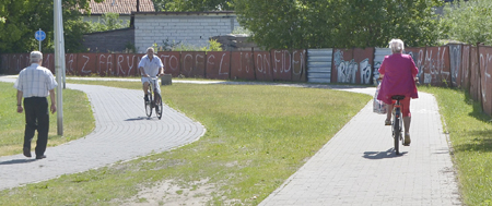 Tuż pod wspomnianymi działkami lenpolowskimi wiedzie szlak pieszo-rowerowy. Z powodu ukształtowania terenu miejscami ścieżka piesza i rowerowa biegną tuż obok siebie, a kilkanaście metrów z kolei się rozwidlają. Właśnie na takim odcinku zauważyliśmy, że cyklistom mylą się szlaki, co może skończyć się kolizją pieszy-rowerzysta.
