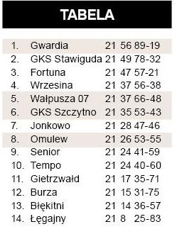- Zdrzemnęliśmy się pierwszy kwadrans – przyznaje trener Gwardii Mariusz Korczakowski, dodając, że nie bez znaczenia były problemy jego podopiecznych z przyzwyczajeniem się do nie najlepszej murawy w Gągławkach. – Od dwudziestej minuty wyglądało to już nieźle. Strzeliliśmy bramkę, a potem mieliśmy kilka wybornych sytuacji. Druga połowa to była nasza dominacja, ale nic nie chciało wejść – kontynuuje szkoleniowiec zespołu ze Szczytna. – Już myślałem, że nic nie wpadnie – odnosi się do sytuacji z doliczonego czasu, gdy do pustej bramki nie trafił Wnuk. A jednak wpadło. Tuż przed ostatnim gwizdkiem sędzia podyktował rzut wolny za zagranie ręką. Balcerzak, dopingowany przez przybyłych na spotkanie kibiców ze Szczytna, idealnie podkręcił piłkę i ta znalazła się w siatce. – Niesprawiedliwie by się stało, gdybyśmy ten mecz przegrali – podsumowuje trener Korczakowski. W najbliższą sobotę jego drużyna podejmie wicelidera ze Stawigudy.