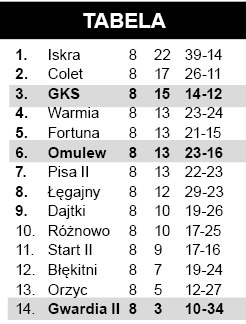 Omulew dobrze weszła w spotkanie, ale potem było coraz gorzej. Duży wpływ na wynik miała fatalna końcówka pierwszej odsłony. Gospodarze szybko zdobyli trzy bramki, a po zmianie stron poczynaniom gości zabrakło zdecydowania. To drugi mecz, w którym wielbarczanie tracą punkty w konfrontacji z niżej notowanym rywalem.