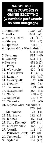 Gmina Szczytno jest jedynym samorządem w powiecie szczycieńskim, w którym systematycznie z roku na rok przybywa mieszkańców. Na koniec 2019 r. zameldowanych na stałe było ich tu 12 905, co oznacza wzrost w ciągu roku o 127. Najwięcej mieszkańców przybyło w Lipowej Górze Wschodniej (34). To najbardziej dynamicznie rozwijająca się miejscowość w gminie. W ciągu ostatnich lat liczba mieszkańców się tu podwoiła.{akeebasubs !*}