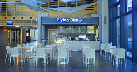 piętrze, tam gdzie jest urządzony taras widokowy. Niestety podmiot mający ją prowadzić wycofał się. Ciekawscy, którzy odwiedzali port lotniczy, a przy okazji i chcieli wpaść do restauracji srogo się zawiedli. Nie znaczy to jednak, że podróżni udający się do Krakowa czy Berlina wystartują na głodnego, W strefie odlotów, czyli po przejściu odprawy, czeka na nich nieduży lokal gastronomiczny Flying Bistro oraz dwa sklepy wolnocłowe i kioski. Na lotnisku jest też mała kaplica, gdzie można pomodlić się o pomyślny lot. Wyświęcił ją, jak i całe lotnisko, arcybiskup dr Józef Górzyński.{/akeebasubs}