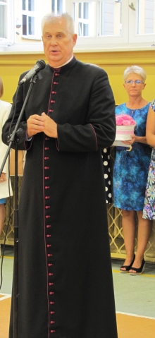 W trakcie uroczystości głos zabrał także ks. dziekan Andrzej Wysocki. Zwracał się do uczniów, ich rodziców i nauczycieli. Najdłuższą część wystąpienia poświęcił tym ostatnim, nawiązując do protestów w oświacie sprzed kilku miesięcy. - Nauczyciel to ktoś, kto służy i wy macie być na służbie dla waszych dzieci. Trzeba zostawić różnego rodzaju sprawy partyjne i indywidualne, nie wdawać się w gierki. Dlatego apeluję, żebyście nie strajkowali – mówił ksiądz. - Uczcie dzieci o Bogu, o ojczyźnie, to jest wasza praca – kontynuował, dodając, że w życiu nie chodzi przecież o to, żeby zarobić, ale mieć satysfakcję z wykonywanego zawodu. Do słów dziekana nikt z obecnych na uroczystości się nie odniósł, ale wśród części nauczycieli wzbudziły one kontrowersje. Oburzona nimi była Beata Boczar, nauczycielka w SP nr 3 z ponad 30-letnim stażem, radna miejska. - Uważam, że takie wypowiedzi na rozpoczęciu roku szkolnego, gdzie są rodzice i dzieci, nie powinny padać. Było to zajęcie wyraźnego stanowiska po stronie rządu, podczas gdy w oświacie cały czas źle się dzieje – komentuje wystąpienie księdza Beata Boczar.