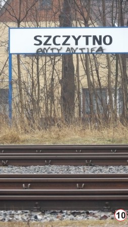 Wraz ze zmianą kolejowego rozkładu jazdy ruszyły prace związane z modernizacją linii Szczytno-Ełk. Na razie roboty objęły odcinek od Pisza na wschód (fot. 9). O tym, że jakość torów, po których do tej pory jeździły pociągi, nie była najlepsza, przekonuje fakt, że zastępczą komunikacją autobusową, zazwyczaj znacznie wolniejszą, trasę Pisz-Ełk pokonamy szybciej niż do tej pory. Prace na terenie naszego powiatu mają rozpocząć się we wrześniu, ale już teraz na końcu starego peronu dworca w Szczytnie pojawiła się nazwa nowej stacji, zapisana mocno niewprawną ręką (fot. 10). Czyżby to miałaby być odpowiedź na planowany dodatkowy przystanek kolejowy w Piszu?