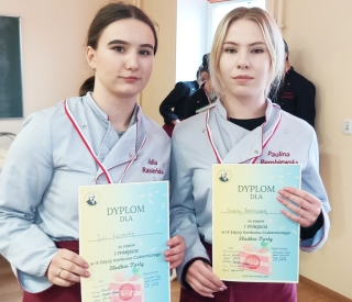 Drugie miejsce zajęły uczennice kl. II br. cukiernik – Alicja Kołodziejczyk i Łucja Sokołowska, autorki tarty Raffaello z żelką mango i truskawkami. Trzecia lokata przypadła uczęszczającym do tej samej klasy Julii Gawryszewskiej i Szymonowi Nowosielskiemu, którzy przygotowali tartę marmurkową z przyrządzonym własnoręcznie słonym karmelem. - Zasługujecie na miano cukierników z krwi i kości. Niejedna osoba by wam pozadzrościła wyobraźni cukierniczej – komplementował uczniów szef jury, wicedyrektor Napiórkowski, dziękując także nauczycielkom, które zorganizowały konkurs – Małgorzacie Polak, Anecie Kalinowskiej, Magdalenie Talarek i Ewie Juszczak.