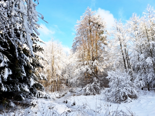 Obecnie, z powodu różnych obowiązków, nie mogę być w lesie tak często jakbym chciał. Żałuję, że nie jestem w stanie do niego iść, zwłaszcza przy pięknej pogodzie. Jednak w ostatnią niedzielę, pomimo tego, że czekało mnie jeszcze sporo pracy, wybrałem się sam na dłuższy spacer. Wyruszyłem przechodząc obok Dino przez osiedle, za którym wszedłem na pole. Idąc po śniegu, na powierzchni którego wytworzyła się pękająca z trzaskiem pod butami skorupa lodu, uświadomiłem sobie, że nikt tędy nie chodzi. Dla mieszkańców osiedla, przez które przechodzę, znajdujący się kilkaset metrów od ich domów las nie istnieje. Ten ciągnący się pomiędzy Szczytnem, Rudką, Płozami, Młyńskiem i Wałpuszą las należał dawniej do miasta. Zapewniał drewno, ale też i rekreację. Czasem spotykam w nim nielicznych spacerowiczów, a nawet narciarzy. Zazwyczaj jednak jest pusto. Tym razem widziałem dwie pary, ale śladów innych ludzi na śniegu prawie nie było. Wiele dróg przykrywał nienaruszony ludzką obecnością i leżący od kilku dni śnieg. Część drzew pod ciężarem lodu było wygiętych tak, że ich wierzchołki dotykały ziemi. Gałązki brzóz oblepione były zamarzniętymi i skrzącymi się w słońcu kroplami wody. Mazurski las zawsze mnie zachwyca, nie mogę się nim nasycić, ale w tym dniu był naprawdę wyjątkowy. Chodząc tak i ciesząc się jak dziecko, zastanawiałem się, dlaczego w niedzielę jest tak pusto, dlaczego nie ma w nim tłumów ludzi? Czemu rodzice nie zabierają tu dzieci na spacer? Przecież za darmo mamy niesamowite widoki, za które inni muszą płacić i które nigdy nie mają prawa się znudzić. Wiem, że młodzi, nawet mieszkający na wsi ludzie, lasem się nie fascynują. Ich życie skupia się w Internecie. Dla nich las to owady, a zwłaszcza niebezpieczne kleszcze. Może to i dobrze, że las jest coraz bardziej pusty, że mieszkający na jego obrzeżu ludzie się nim nie interesują. Dzięki temu mam go dla siebie a żyjące w nim zwierzęta mają spokój.