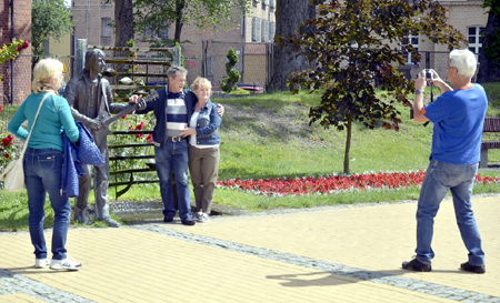 W pobliżu plaży mamy też figurę rockmana, który rozsławił nasze miasto w świecie. Pomnik, gdy tylko sprzyja pogoda, jest wręcz oblegany przez turystów. Właśnie w miniony czwartek spotkaliśmy pod nim wiele osób, m. in. przyjezdnych z Głogowa i Poznania, którzy urządzili sobie sesję zdjęciową.