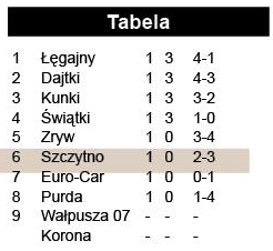 KS Łęgajny – KP Purda 4:1, Świątki Skolity – Euro-Car Wrzesina 1:0.
