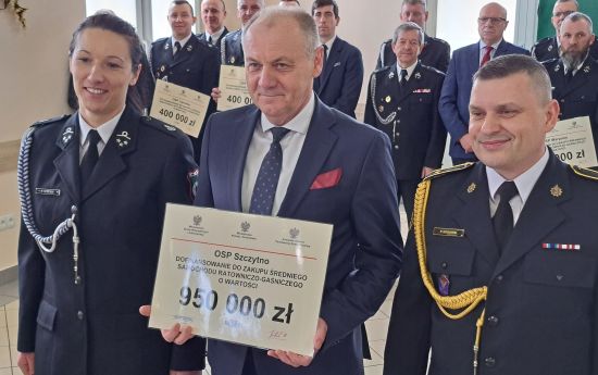 Promesy na zakup trzech pojazdów trafiły do jednostek OSP w powiecie szczycieńskim. Strażacy ochotnicy z jednostek w Lipowcu, Romanach i Szczytnie odebrali je we wtorek z rąk wiceministra Błażeja Pobożego, wojewody Artura Chojeckiego i prezesa WFOŚiGW w Olsztynie Jarosława Bogusza.