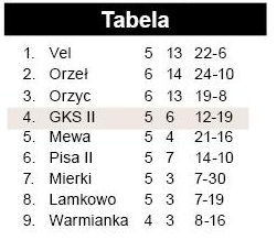 WTKS Mierki - Orzeł Czerwonka 0:7, CWKS 2020 Lamkowo - Orzyc Janowo 0:5, Vel Dąbrówo – Warmianka Bęsia. Pauzowała Mewa Smykowo.