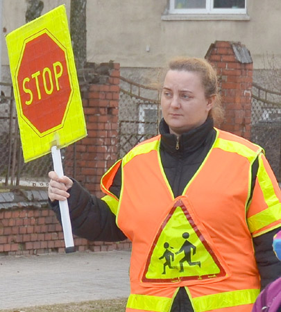 Przejście dla pieszych, usytuowane przy SP nr 3, uznawane jest przez rodziców i dyrekcję szkoły za jedno z najniebezpieczniejszych w Szczytnie. Jako jedyne w mieście ma jednak osobę przeszkoloną do bezpiecznego przeprowadzania przez nie uczniów. Jest nią Magdalena Kołakowska, mieszkanka naszego miasta. Pozostając jakiś czas bez zajęcia, postanowiła skorzystać z oferty miejscowego Powiatowego Urzędu Pracy i zapisała się na kurs aktywnego poszukiwania pracy. Po jego skończeniu, co miało miejsce w grudniu zeszłego roku, bogatsza o nową wiedzę, szybko znalazła coś interesującego dla siebie. Było to kolejne szkolenie w Wojewódzkim Ośrodku Ruchu Drogowego, po którym zdobywa się uprawnienia strażnika ruchu drogowego. Pod tą tajemniczą nazwą kryje się powszechnie znana profesja polegająca na przeprowadzaniu dzieci przez jezdnię. Po zaliczeniu egzaminów, w ramach prac interwencyjnych, znalazła zatrudnienie w Szkole Podstawowej nr 3.
