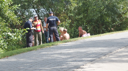 Jak widać, biesiada skończyła się interwencją policji, bo trunków nawet niskoprocentowych tuż przy ścieżce pieszo-rowerowej pić nie wolno.