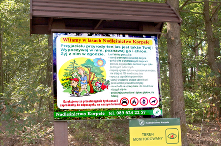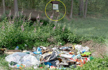 Niedawno pisaliśmy, że budowa szlaku pieszo-rowerowego Kamionek – Szczycionek dobiega końca. Obecnie inwestycja jest już gotowa i jak widać ruch na ścieżce jest całkiem spory, bo wielu mieszkańców Kamionka i Szczytna zmierza nią nad jezioro w Szczycionku. Nie jest ono duże, ani też woda w nim nie jest wybitnie czysta, ale kąpiele w tym podmiejskim akwenie mają swoich zwolenników. Miejsc plażowych jest kilka, w tym jedno przy sporej polanie, gdzie w dawnych czasach często rozbijali tabor Romowie. Trafiliśmy tam na niewesoły obrazek – pośrodku polany wala się kupa śmieci. Tymczasem parę metrów za odpadkami kilka dni temu Nadleśnictwo Korpele postawiło swoją tablicę. Na kolorowej planszy leśnicy dziękują m. in. za przestrzeganie porządku w lesie w myśl zasady: wypoczywaj w nim, poznawaj i chroń. Jest też i o tym co robić ze śmieciami: wrzucaj odpadki do pojemników. Ba, pojemników