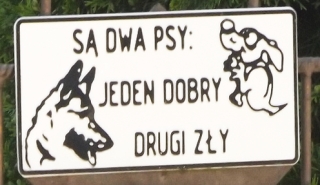 Trochę starsi czytelnicy „Kurka” zapewne pamiętają owe początkowe fragmenty „Pana Tadeusza”, w których nasz wieszcz przeznacza miejsce m.in. na ukazanie polskiej gościnności. Dziś, przeszło 200 lat po wydarzeniach z narodowej epopei, raczej rzadko spotyka się w zabudowie jednorodzinnej „bramy na wciąż otwarte” – choćby z tego powodu, że obecnie posesje powinny być zamykane – zwłaszcza gdy mamy na podwórku psa. Tabliczki ostrzegające przed psem znajdują się na furtkach lub innych częściach ogrodzenia. W „Kronice” pisaliśmy już kiedyś o owych tabliczkach, warto jednak przyjrzeć się im jeszcze raz w kontekście mówienia o gościnności. Psy są tu głównie ostre albo agresywne – a nie są po prostu psami. Wchodząc w jakiejś sprawie na czyjeś podwórko, możemy – niczym w rosyjskiej ruletce – szczęście mieć albo go nie mieć (fot. 5).