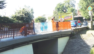 W ostatnim czasie w Szczytnie odmalowano większość poziomych znaków drogowych, co pozytywnie wpłynęło na estetykę miasta i poprawiło bezpieczeństwo pieszych i kierowców. Późnowiosenny lifting nie musi jednak dotyczyć wyłącznie odnawiania pasów, ale można też np. pomalować…mosty. Mostków ci u nas niedostatek, warto zatem dbać o te, które mamy. W minionym tygodniu swoje oblicze zmienił – i to kilkakrotnie - szczycieński mostek nad kanałem stanowiącym granicę między ulicami Sienkiewicza i Mickiewicza. Zmienił oblicze, ponieważ nadano mu na krótko zupełnie nową tonację barwną. Na zdjęciu nr 3 widać jeszcze na balustradzie niedawne biało-niebieskie pasy , które ekipa ze służby drogowej zastąpiła jednolitą kolorystyką w odcieniu brązu. Jak się okazało, była to jedynie farba podkładowa. Kilkadziesiąt godzin później brązowy przemieszano z niebieskim, a na początku bieżącego tygodnia pojawiła się także biel, wrócono zatem do dotychczasowego zestawienia barw. Pomalowano również upaćkany farbą murek znajdujący się pod spodem.