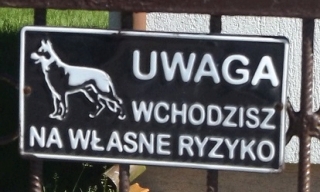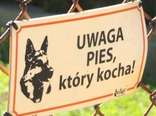 Właściciele uczciwie ostrzegają, że przekroczenie granicy chodnika i czyjejś posesji może nieść określone skutki (fot. 6). Jesteśmy straszeni rozmaitymi psimi rasami – czasem z przymrużeniem oka (fot. 7). Jeszcze gorsi od czworonogów bywają ich właściciele – takie tabliczki też można spotkać. Pozornie przyjazną dla „intruzów” treść niesie napis innej treści (fot. 8). No tak, ale nie ma tu dokończenia w postaci formy „gości”. Może więc pies kocha jedynie właścicieli, a dla wszystkich innych jest odpowiednio agresywny, ostry i po prostu zły?