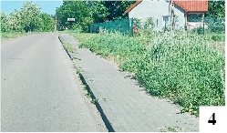 Susza suszą, ale niektóre rośliny potrafią sobie poradzić i bez specjalnej gleby, i bez nadmiaru wody. Rozmaite chwasty i trawa bez problemu wyrastają tam, gdzie są niepożądane – czyli na chodniku. Teoretycznie ktoś powinien im w tym przeszkodzić – ale nie przeszkadza. Wielokrotnie pisaliśmy o mieszkańcach tej czy innej ulicy albo miejscowości, którzy marzą o chodniku. Gdy wyłożony kostką lub płytkami trotuar już jest, zazwyczaj jakoś nie ma komu zająć się jego sprzątaniem. Sporadycznie widzimy osoby, które wyrywają chwasty rosnące na wysokości ich domostwa. Częściej jednak jest jak na obrzeżu Lipowca (fot. 4) – trawa może zarosnąć pół chodnika, zrobić z niego ścieżynkę i nie będzie problemu.
