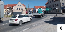 Ostatnie dni upływają w Szczytnie między innymi pod znakiem częstych korków ulicznych (fot. 6) – i to poza godzinami szczytu. Są one spowodowane trwającymi pracami w ciągach dróg krajowych. Niemal w jednym czasie są wycinane kawałki starego asfaltu, wylewane nowe, stawiane lampy oświetleniowe przy przejściach dla pieszych. W miniony weekend lampy z najważniejszą częścią, czyli oprawą z żarówkami, można było już zobaczyć w okolicy ronda Kresowiaków (fot. 7).