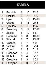 MKS Ruciane-Nida – Mazur Pisz 3:0, Fala Warpuny – Start Kruklanki 4:0, Pogoń Banie Mazurskie - Orzeł Czerwonka 4:2, Jurand Barciany – Reduta Bisztynek 2:0.