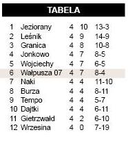 W czwartej serii spotkań Wałpusza znalazła swojego pogromcę, a została nim drużyna z podolsztyńskiego Jonkowa. Jedną z bramek dla gości zdobył Bartosz Kurto, znany z występów w Błękitnych Pasym.