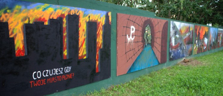 W Warszawie na Ursynowie uczniowie klas III tamtejszego gimnazjum, po zorganizowaniu im specjalnych zajęć, na których poznawali zasady i techniki tworzenia murali oraz graffiti opracowywali swoje indywidualne dzieła na zadany temat. Była nim rocznica Powstania Warszawskiego, a efekt widoczny jest na załączonym zdjęciu. Warto jeszcze dodać, że w tym ursynowskim przypadku prace nie zostały wymalowane bezpośrednio na murze, a odrębnych płytach, które dają się łatwo zdejmować z muru. Dzięki temu tematykę owych „murali” szkoła zmienia co kilka miesięcy.