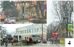 Poprzednia sobota była dniem przycinania i wycinania drzew w różnych punktach miasta – prowadzone w zasadzie równolegle prace widzieliśmy przy wjeździe do ratusza, w pobliżu kościoła ewangelickiego i przy Szkole Podstawowej nr 4 (fot. 4).