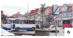 Od dłuższego już czasu sobotnie kursy komunikacji miejskiej w Szczytnie są zawieszone, ale wyjątek zrobiono w miniony weekend. Powodem było pożegnanie autobusu Autosan H9-35, który po trzech dekadach jazdy po miejskich i podmiejskich drogach przeszedł na emeryturę. Z tej okazji zorganizowano specjalny kurs linii nr 3 – choć de facto trasa przebiegała w znacznym stopniu tropami linii nr 2, czyli z pętlą w Leśnym Dworze. O 12.30 z przystanku przy ratuszu autobusowy emeryt ruszył pilotowany przez nowego „elektryka” wyświetlającego pożegnalny napis (fot. 5). Pasażerowie – starsi i młodsi – zajęli miejsca siedzące i stojące przede wszystkim w wozie (fot.6), który zasilił szczycieńską komunikację miejską w latach 90. ubiegłego wieku. Flota naszych autobusów dość regularnie jest wymieniana. Niedawno na trasy wyjechały kosztowne autobusy elektryczne, parę tygodni temu zestaw naszych wozów wzbogacił używany mercedes zakupiony od zakładu komunikacji w Ełku (trzeci z lewej na fot. 7).