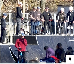 Słoneczna aura zachęcała za to miłośników dwóch kółek uprawiających z lekka ekstremalną wersję sportu rowerowego. Całkiem sporo nastolatków korzystało z rozbudowanego pod koniec ubiegłego roku skateparku przy ul. Pasymskiej (fot. 9). Owo miejsce ma powieszony dwa miesiące temu regulamin. Wydaje nam się, że ma się on trochę nijak do tego, co widać na zdjęciu. Z przepisów wynika, że