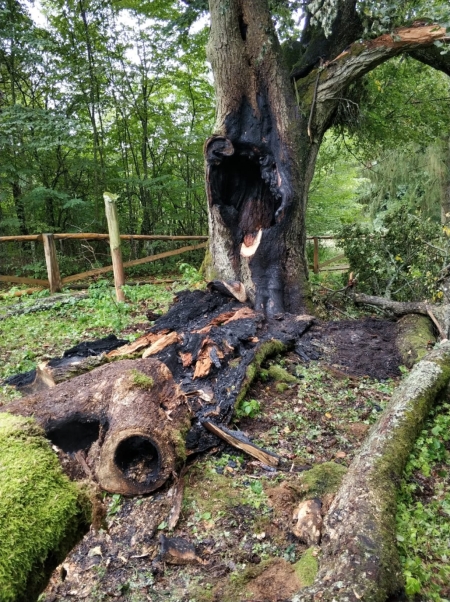 Zgłoszenie o kolejnym pożarze strażacy otrzymali około godz. 9.00. Wynikało z niego, że na terenie leśnictwa Galwica pali się drzewo. Jak się okazało, była to będąca pomnikiem przyrody 200-letnia lipa o obwodzie 2 metrów i wysokości 20 metrów. Pożar ugaszono, ale drzewo bardzo poważnie ucierpiało. Jak poinformowało Nadleśnictwo Szczytno, będące pomnikami przyrody od 1984 r. lipy bartne zostały już mocno uszkodzone podczas wichury w grudniu 1999 r. W 2001 r. poddano je zabiegom konserwatorskim. Zniszczona przez wtorkowy pożar lipa pozostanie w naturze do naturalnego rozkładu.