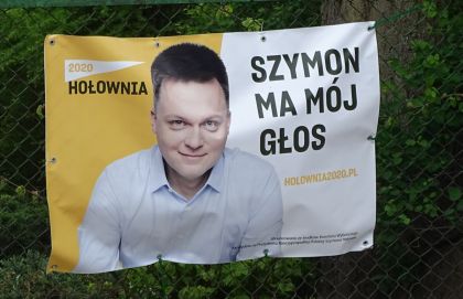 W tym roku wiele spraw wygląda nie tak, jak powinno, a w tym gronie znajduje się również kampania prezydencka. Jej znaki były u nas widoczne na przedwiośniu, gdy pojawiły się pierwsze wyborcze banery, a do Szczytna jako jedyny z grona kandydatów przyjechał urzędujący prezydent Andrzej Duda. Koronawirus skomplikował wszystko, kampania (o ile można było o niej w ogóle mówić) niezbyt przypominała kampanię. Oprócz banerów i plakatów Dudy i Kosiniaka-Kamysza dostrzegliśmy w paru miejscach nieśmiałe ślady aktywności sztabu Bosaka. Ostatnio ujawnili się także fani uchodzącego za antysystemowego Hołowni (fot. 6). Z odszukaniem plakatów związanych z pozostałymi chętnymi do zostania prezydentem mieliśmy spory kłopot. Tydzień temu zmienił się ponadto jeden z kandydatów (zostali tylko męczyźni), a co będzie do wyborów – zobaczymy. Kampania nie byłaby kampanią, gdyby nie czynione złośliwości i pojawiające się akty wandalizmu. Udało nam się zobaczyć dwa zniszczone banery Andrzeja Dudy. Jeden z nich wyglądał niedawno jak na fot. 7.