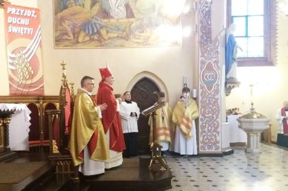 Maj kojarzył się przez lata z sezonem komunijnym. Tegoroczne uroczystości zostały w poszczególnych parafiach poprzesuwane na czas bliżej nieokreślony. Obostrzenia związane ze zmniejszeniem liczby wiernych w kościołach nie ograniczyły do zera religijnych ceremonii. Oprócz niedzielnych i codziennych nabożeństw można spotkać się np. z udzielanymi w świątyniach ślubami – choć bez późniejszych hucznych wesel. W kościele WNMP w Szczytnie pierwsze grupy młodzieży przystąpiły już do bierzmowania. Ceremoniom przewodniczył biskup pomocniczy Janusz Ostrowski (fot. 8), a jednorazowo (były dwie tury) w świątyni znajdowało się dziesięcioro bierzmowanych. Pozostali na udzielenie sakramentu muszą poczekać do czerwca.