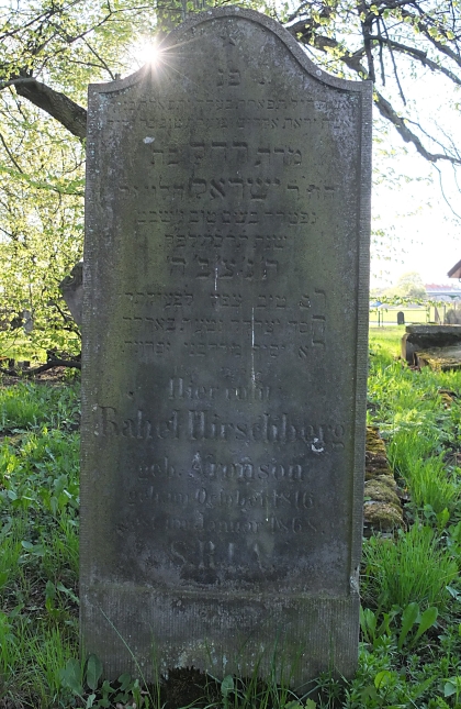 Na szczycieńskim cmentarzu żydowskim zachowały się macewy należące do zmarłych kobiet z rodziny Hirschbergów: Golde Hirschberg, (1843 – 1866) i Racheli Hirschberg z domu Aronson (1816 – 1868). Prawdopodobnie Rachela była żoną Arona Hirschberga oraz matką Juliusa i Golde.