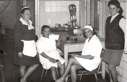 Specjalnie do tego felietonu wybrałam fotkę, na której Zarząd „Społem” PSS urzęduje przy bankietowo suto zastawionym stole. Niestety tyle tych imprez było, że trudno namierzyć lokal. Na fotce bez problemu rozpoznaję Pierwszą Damę Spółdzielni Panią Marcjannę Dobrońską, Wiceprezes ds. Handlu, która prezentuje swój czarowny uśmiech i śmiało patrzy w obiektyw. Tuż obok siedzi Prezes Spółdzielni Pan Werner Urbański, spoglądając na Tajemniczą Damę, niestety mimo usilnych starań nie udało mi się ustalić kim jest pani siedząca w centrum stolika nr 6. Obok Tajemniczej Damy siedzi pan Kazimierz Borucki, Wiceprezes ds. Produkcji. Piękna fotka i fantastycznie zatrzymany czas. Takie spotkania Zarządu władającego prężnie funkcjonującą Spółdzielnią były mile widziane i bardzo często organizowane. Bawili się włodarze, bawili się też pracownicy.