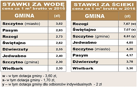 Na wniosek wójta radni, podczas poniedziałkowej sesji, obniżyli cenę za dostarczaną wodę o 30 gr, podnieśli za to o 27 gr opłatę za odprowadzanie ścieków. Mniejsza stawka za wodę to skutek inwestycji realizowanych w gminie Szczytno w ostatnich latach. {akeebasubs !*}