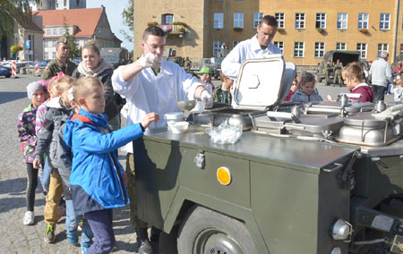 Oczywiście, jak na piknik żołnierski przystało, nie mogło zabraknąć wojskowej grochówki, na którą zaprosili swoich małych egzaminatorów.
