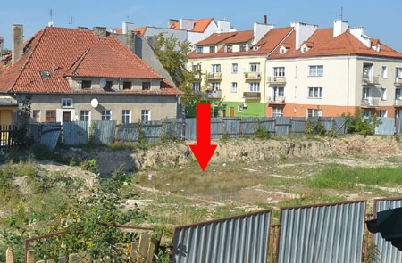 Na zdjęciu nie jest dobrze widoczny, więc pokazuje go czerwona strzałka. Mały akwen nie wysycha mimo słonecznej pogody, która utrzymywała się od ponad tygodnia, więc może właściciel zarybiłby obiekt. Byłyby wtedy jakieś korzyści, np. świeże karpie na święta Bożego Narodzenia.