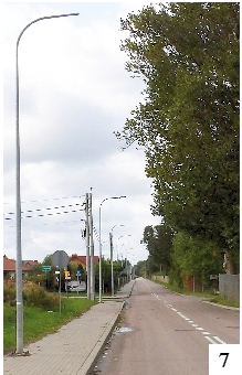 Dość swoisty sposób realizacji planu oszczędzania zaproponowano na ul. Gnieźnieńskiej w Szczytnie i jej przedłużeniu znajdującym się w Korpelach przy strefie ekonomicznej. Gdy drogę, mającą kiedyś nawierzchnię częściowo asfaltową, częściowo z powykrzywianej trylinki, a bliżej lasu po prostu gruntową, remontowano 7-8 lat temu, ustawiono gęsto (aż do ostatnich zabudowań) ledowe lampy. Niedawno uznano, że najlepiej będzie zdemontować końcówki na co drugim słupie (fot. 7) i w ten sposób będzie taniej. Tak jest na odcinku ponad kilometra, od początku do końca całego oświetleniowego szeregu. Odkręcone lampy poczekają sobie na lepsze czasy – albo będą na wymianę w przypadku awarii tych używanych.