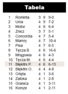 Bilans bramkowy pasymian wygląda wciąż trochę wstydliwie, ale sporo wskazuje na to, że podopieczni Mirosława Romanowskiego odzyskali umiejętność zdobywania goli i nietracenia ich w dziecinny sposób. W drugim z trzech kolejnych meczów na własnym boisku pokonali Zatokę, która jesienią skazana jest, ze względu na remont swojego obiektu, na wyjazdy. - Mecz się szczęśliwie dla nas ułożył – mówi trener Błękitnych Mirosław Romanowski. - Nie sądzę, że Zatoka będzie grała tak słabo w każdym meczu. Nie chcę przez to powiedzieć, że zagraliśmy źle, ale gdybyśmy zaprezentowali się tak jak z Concordią, wygralibyśmy wyżej.{akeebasubs !*}