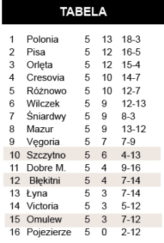 Błękitni rozpoczęli sezon od efektownej wygranej z Pojezierzem, ale później w czterech meczach zdobyli zaledwie punkt. Rozmiary porażki w Barczewie mogą szokować – trzy miesiące wcześniej w IV lidze pasymianie nie dali Pisie większych szans, gromiąc ją u siebie 4:0. Teraz role się odwróciły. – Proste błędy naszej drużyny w organizacji gry przyczyniły się do wysokiej porażki – tłumaczy Dariusz Lipka z zarządu pasymskiego klubu. – Chcieliśmy rewanżować się akcjami zaczepnymi gospodarzom, lecz po stracie piłki to Pisa strzelała bramki.