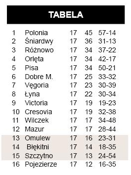 - Odnieśliśmy zasłużone zwycięstwo, ale jego rozmiary są trochę za wysokie – podsumowuje trener Omulwi Mariusz Korczakowski. – Ta wygrana daje nam tlen na wiosnę.