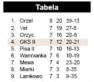 Vel Dąbrówno – Pisa Barczewo 3:1, Mewa Smykowo - Orzeł Czerwonka 2:3, WTKS Mierki – Warmianka Bęsia 0:1. Pauzował Orzyc Janowo.{/akeebasubs}