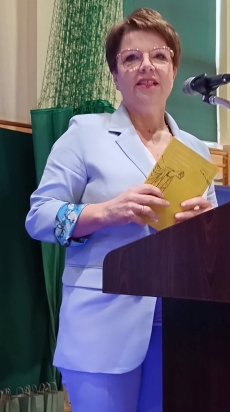 Od przybyłych na jubileusz gości otrzymała wiele upominków, kwiatów oraz podziękowań. Wyjątkowy prezent odebrała z rąk swojej poprzedniczki, Marioli Jaworskiej, prof. Uniwersytetu Warmińsko – Mazurskiego, kierującej obecnie Katedrą Lingwistyki Stosowanej. Był to tomik wierszy Wisławy Szymborskiej. Ten sam zbiór ma być wyniesiony w kosmos przez polskiego astronautę Sławosza Uznańskiego – Wiśniewskiego. Była dyrektor przywołała też postacie swoich nauczycieli, do których ma szczególny sentyment – polonistki Wandy Poniatowskiej, germanistek Bogusławy Łopatki i Grażyny Rodak – Trzcińskiej, anglistki Aliny Wrońskiej i historyczki Krystyny Gełdon.