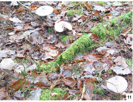 Wszystko kiedyś się kończy – i podobnie jest z tradycyjnie pojmowanym sezonem grzybowym. Tegoroczny był w sumie chyba nie najgorszy, choć momenty zdarzały się różne. Połowa listopada to okres, gdy coraz trudniej o ładne okazy jakichkolwiek znanych powszechnie grzybów jadalnych. Na targowisku można jeszcze spotkać osoby handlujące zielonkami i siwkami. Nam też udało się znaleźć w lesie pojedyncze sztuki tych drugich gąsek (fot. 10.). Wysyp kań już był parę tygodni temu, ale w minioną niedzielę rosły jeszcze tu i ówdzie całkiem perspektywicznie wyglądające sztuki (fot. 11.).{/akeebasubs}