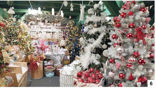 W naszym województwie jest co najmniej jedno miejsce, w którym bożonarodzeniowy klimat trwa praktycznie przez cały rok. Uczniowie młodszych klas szkół podstawowych dość często jeżdżą do fabryki bombek w Kętrzynie. Mieści się ona w dość wiekowym i okazałym budynku znajdującym się w sąsiedztwie obu kętrzyńskich dworców. Już parędziesiąt metrów przed wejściem do gmachu zaczynamy powoli się przenosić w inny świat (fot. 5) . W środku oprócz fabryki bombek zobaczymy także cały zestaw świątecznych dekoracji, specjalną galerię (fot. 6), w której można nabyć (ceny są jednak generalnie dość wysokie) bożonarodzeniowe dekoracje z ubraną choinką włącznie.