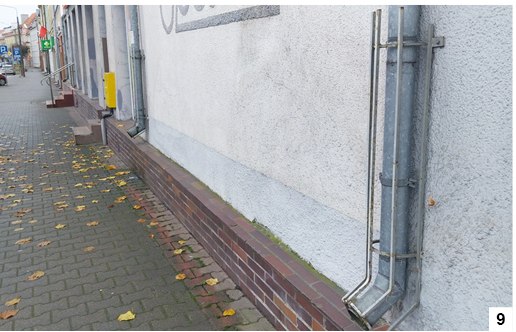 Można by sobie zadać trudu i policzyć, ile kosztuje łącznie – w skali miasta – wymiana zniszczonych elementów. Ich wyklepanie nie zawsze jest chyba możliwe. Receptą może być stosowanie zabezpieczeń w postaci swoistego ogrodzenia, co widzieliśmy np. na kamienicy przy ul. Odrodzenia (fot. 9) . Ale zakupienie czegoś takiego to też jakieś koszty...