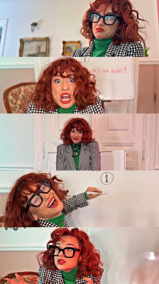 Teledysk nakręciła sama, w swoim warszawskim studiu stylizacji brwi. Kiedy wypożyczony na potrzeby stworzenia filmu obiektyw zawiódł, użyła … telefonu komórkowego. W teledysku wcieliła się w rolę toksycznej coach udzielającej miłosnych porad.