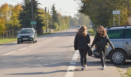 Na terenach pozamiejskich, przy szosach wylotowych ze Szczytna mamy szlaki pieszo-rowerowe. Należą do nich niedawno otwarta ścieżka łącząca Kamionek ze Szczycionkiem oraz szlaki Szczytno - Lipowa Góra, czy też Szczytno - Nowe Gizewo. Niestety, potrzebna ścieżka Szczytno – Korpele nie może doczekać się realizacji, a przecież szosa olsztyńska jest bardzo ruchliwa i pieszy czy rowerzysta nie może czuć się na jej poboczu bezpiecznie. Mało tego, po obu jej stronach ciągną się ogródki działkowe. Ich właściciele często zatrzymują swoje pojazdu na skraju szosy, niekiedy, jak to widać na zdjęciu, parkując całkiem bez głowy – w poprzek w stosunku do jezdni. Aby ominąć takiego zawalidrogę, piesi muszą, niestety, przekroczyć linię ciągłą, a to już tylko krok od wypadku.{/akeebasubs}