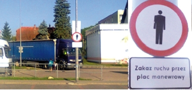 Przepisy są, zdaniem wielu osób, oczywiście po to, by je łamać. Pewno każdy z nas ma na sumieniu przejście przez jezdnię w niedozwolonym miejscu tudzież rozmowę telefoniczną podczas prowadzenia pojazdu. Gorzej, jeśli mamy w trzech miejscach ustawiony znak z dodanym czytelnym tekstem, a i tak każdego dnia dziesiątki osób zakaz łamią (fot. 5). Mowa tu o nieprzechodzeniu przez plac manewrowy w pobliżu Kauflandu. Na całkowitą niefrasobliwość i chyba brak instynktu samozachowawczego wskazuje widoczna na zdjęciu sytuacja, gdy pewna pani skraca sobie tędy drogę, choć na placu faktycznie manewruje kilka wielkich pojazdów. Kierowcy takich drogowych pociągów niekoniecznie widzą, co dzieje się tuż za samochodem. „Kurek” kilka razy był świadkiem sytuacji, kiedy niesfornych pieszych spisywała tu policja, a i tak kolejne osoby szły przez plac prosto w kierunku radiowozu. Inny zakaz jest nagminnie łamany, tym razem przez kierowców, w pobliżu szczycieńskiego ZUS-u. Zmotoryzowani wjeżdżający w ul. Barczewskiego z ul. Lipperta nie mogą parkować po prawej stronie. Część kierowców to ignoruje. Na budynku ZUS-u powieszono nawet tabliczkę odsyłającą pod Kaufland (choć tam parking jest raczej dla klientów marketu). Żeby było ciekawiej, żadnego zakazu nie ma od strony ul. Chrobrego i korzystają z tego kierowcy, którzy wjeżdżają w ul. Barczewskiego z drugiego jej końca. Parkują oczywiście po obu stronach (fot. 6) . Utrudnia to pracę np. kierowcom autobusów ZKM, którzy zjeżdżają tędy do pobliskiej zajezdni i mają problemy ze zmieszczeniem się na wąskich resztkach jezdni. Na koniec mowa o jeszcze jednym zakazie, złamanym w bardzo irytujący sposób w minionym tygodniu. Na początek cytat: