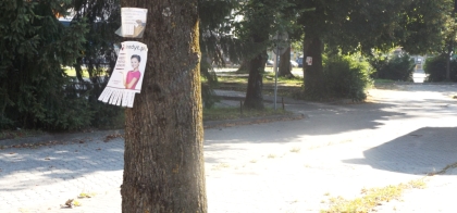 To oczywiście stosowne fragmenty z Kodeksu wykroczeń, czyli tekstu, którego najważniejsze urywki powinno się znać. Niestety, nie znają ich (bądź je lekceważą) ci, którzy naklejają rozmaite ogłoszenia na przystankach – o tym już dzisiaj było. Jeszcze gorzej wyglądają oblepione bądź obszyte np. reklamami drzewa. Na ulicy Chrobrego i Kolejowej praktycznie każde drzewo zostało w wątpliwy sposób przyozdobione ulotkami pewnej firmy pożyczkowo-kredytowej. Już nazajutrz część kartek leżała na ziemi – to być może efekt działań rozzłoszczonych czymś takim obrońców praw drzew (ale czy ziemi?). Kolejne kartki znikały sukcesywnie, jednak na ogół zostawał ślad po zszywkach wraz z resztkami papieru. Kilka ulotek dostrzegliśmy także w miejscu, gdzie ul. Kolejowa przechodzi w ul. Linki (fot. 7) . Drzewo na pierwszym planie ucierpiało bardziej, bo znajduje się na nim jeszcze jedno ogłoszenie.